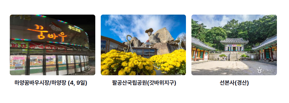 - 경산장 (5, 10일장) – 지역 특산물을 구매할 수 있는 전통시장