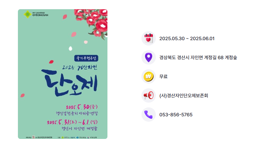 축제 일정: 2025년 5월 30일(금) ~ 6월 1일(일)