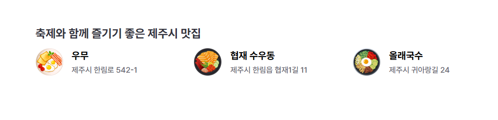- 전통 한식당 – 제주 향토 음식을 맛볼 수 있는 곳