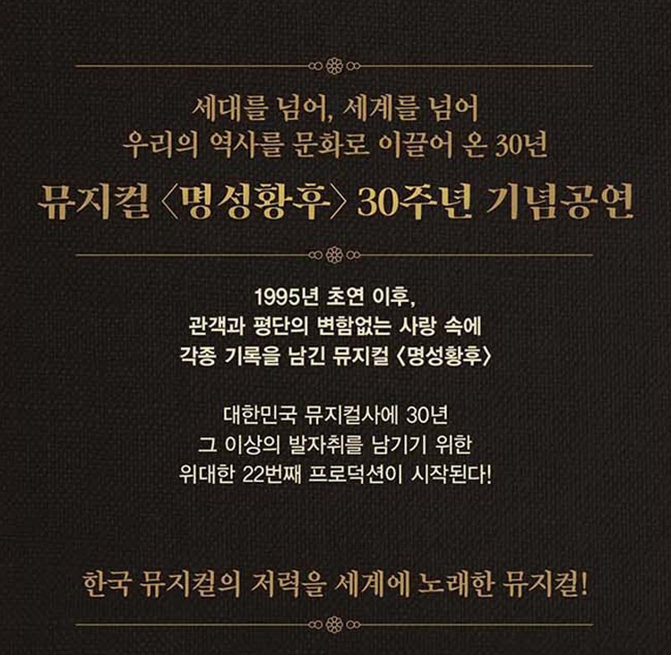 - 공연명: 뮤지컬 명성황후 30주년 기념공연