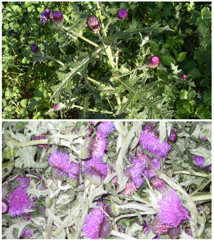 - 엉겅퀴: 신선한 엉겅퀴 전초(뿌리, 줄기, 잎, 꽃 등) 약 5kg