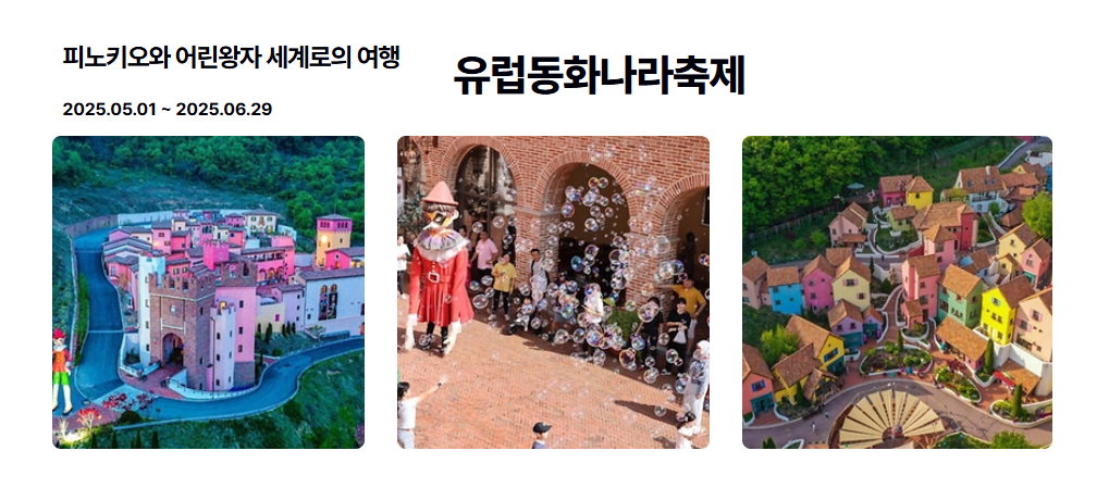 유럽동화나라 축제는 프랑스와 이탈리아를 대표하는 동화 속 인물인 ‘어린왕자’와 ‘피노키오’를 테마로, 전시·체험·공연이 어우러진 다채로운 프로그램을 통해 관람객들에게 유럽 동화 속 세계를 직접 여행하는 듯한 감성적 경험을 선사할 예정입니다.