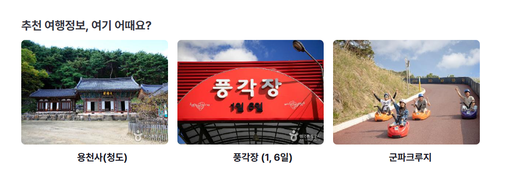 - 청도 신화랑풍류마을: VR 체험장, 궁도장 등 다양한 체험 가능