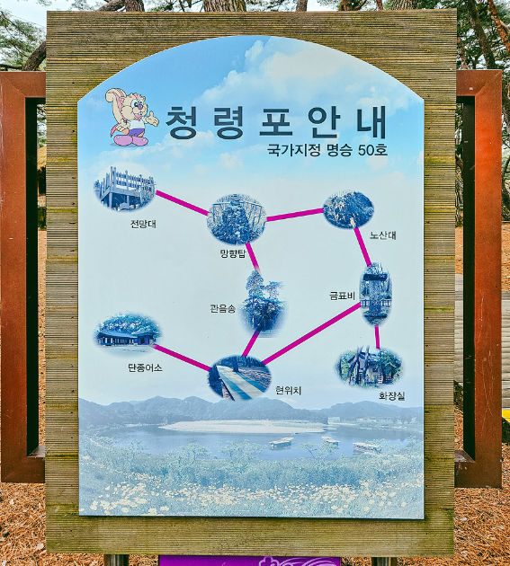 도착 후 가장 먼저 보게 되는 것은 금표비와 단종 어가터입니다. 이곳을 시작으로 관음정, 노산대, 망향탑 등을 둘러보며 걷는 코스는 약 1시간 정도 소요됩니다. 중간중간 포토스팟이 많아 사진 찍는 즐거움도 쏠쏠합니다.