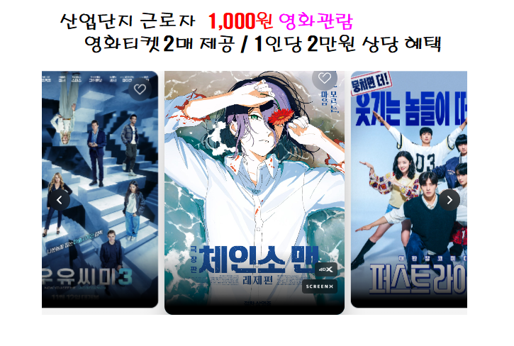 🎉 (산업단지 근로자 대상) 1,000원 영화티켓 2매 제공.