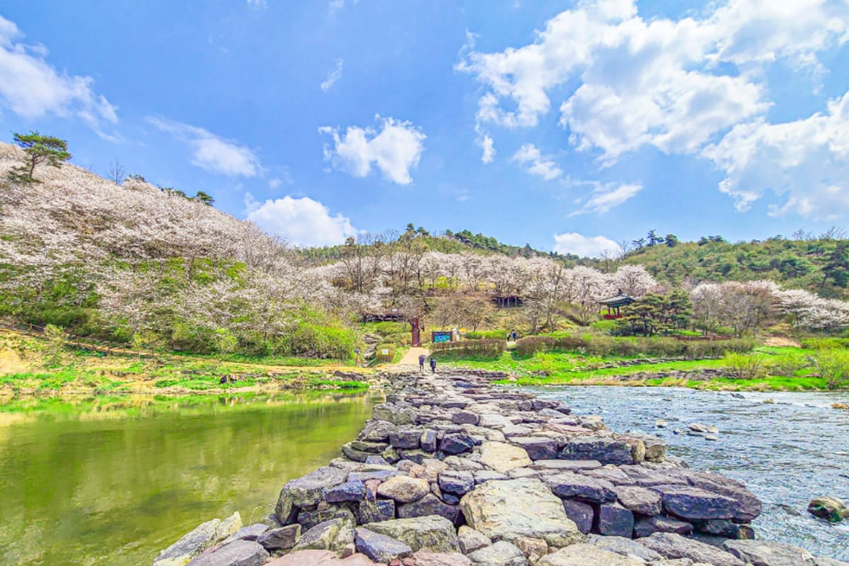 진천 농다리 생태공원은 봄이 되면 벚꽃, 유채꽃, 철쭉 등 다양한 꽃들이 공원을 화려하게 수놓으며, 따뜻한 날씨와 어우러져 걷기 좋은 여행지로 변신합니다. 특히, 농다리 주변을 따라 흐르는 맑은 물과 어우러지는 풍경은 사진을 찍기에 최적의 장소로, 많은 여행객들이 SNS에 인증샷을 남기는 명소로도 유명합니다.