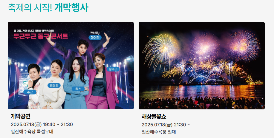 - 불꽃놀이 명당: 일산해수욕장 중앙광장 또는 대왕암공원 방면