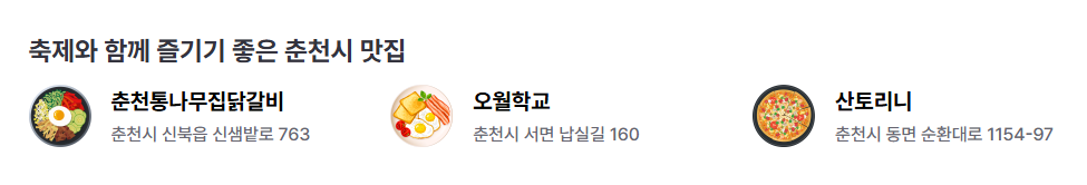 - 안반지닭갈비 – 숯불 닭갈비, 소금구이 (가평군 가평읍 남이섬로 102).