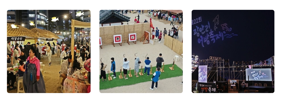 - 어방민속마을: 옛 어촌마을을 재현한 공간으로, 수문장 교대식, 마당극 공연, 한복 체험, 수군 불화살쏘기 등 다양한 체험 가능.