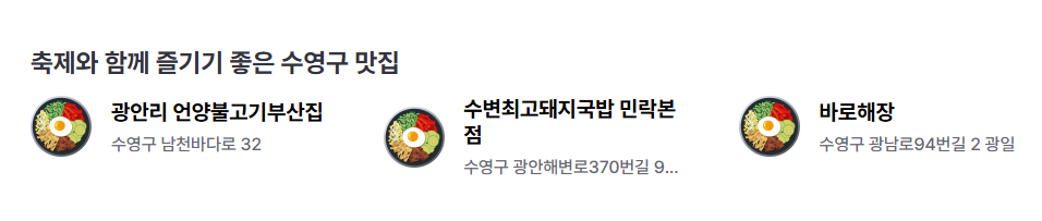 - 광안리 해변횟집 – 신선한 해산물과 회를 즐길 수 있는 곳.