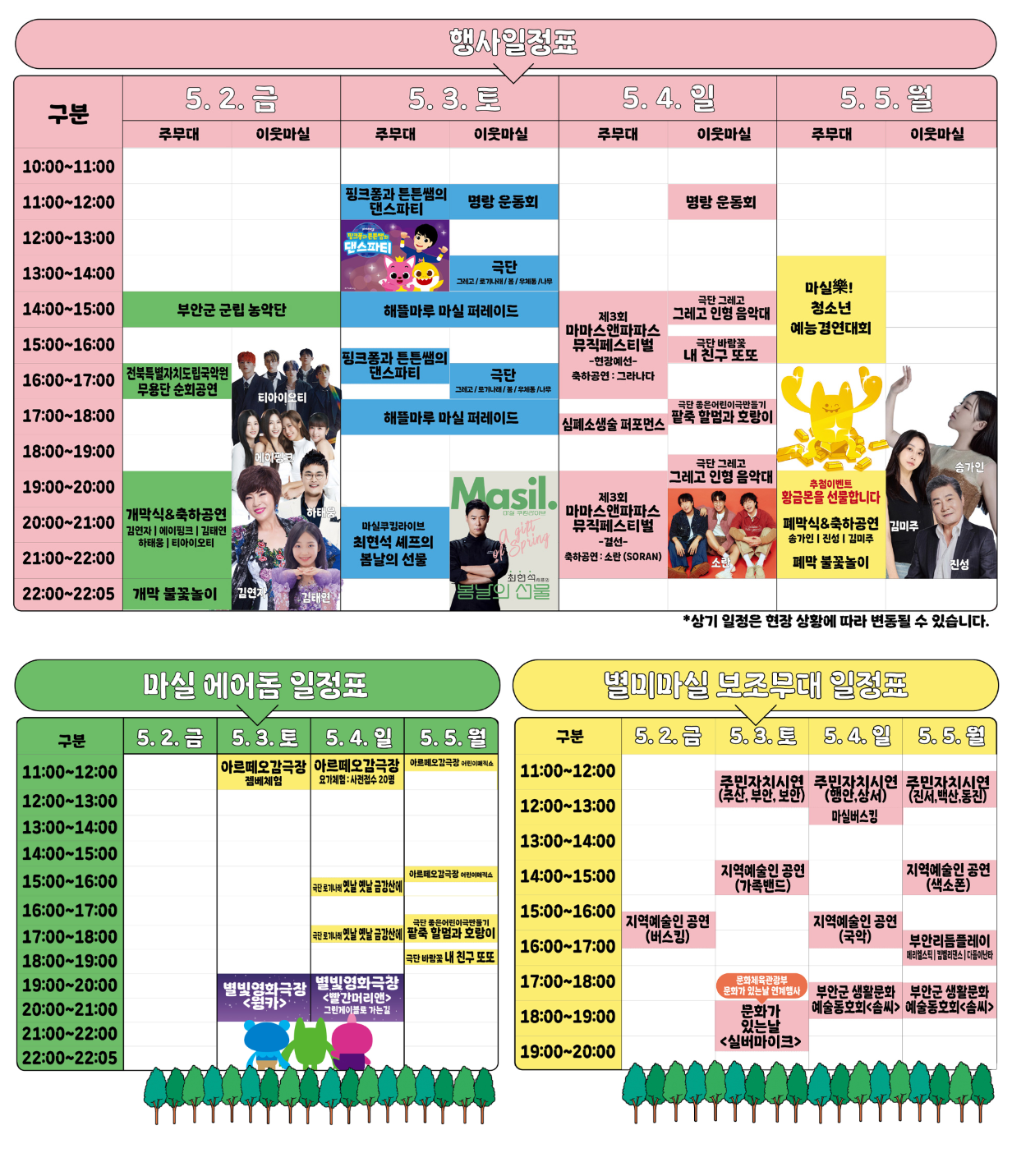 - 개막식 & 퍼레이드 (5월 2일) – 에이핑크, 김연자 등 유명 가수 공연