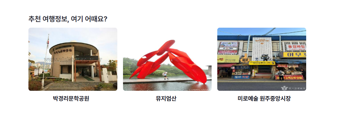 축제 방문과 함께 원주의 다양한 관광지를 함께 둘러보시는 것을 추천드립니다: