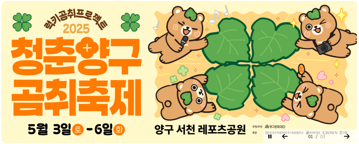축제 마지막 날에는 불꽃놀이와 함께 대미를 장식하는 무대가 준비되어 있어, 온 가족이 하루를 멋지게 마무리할 수 있습니다. 단순한 지역 축제를 넘어, 세대가 공감하고 소통할 수 있는 시간이 마련되는 것이 양구 곰취 축제의 진정한 매력입니다.